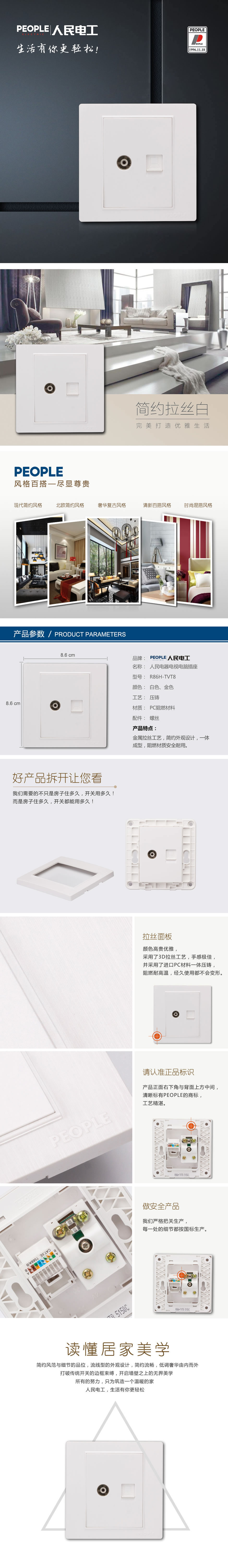型号:R86H-TVT8 一联电视电脑插座;颜色:白色、金色